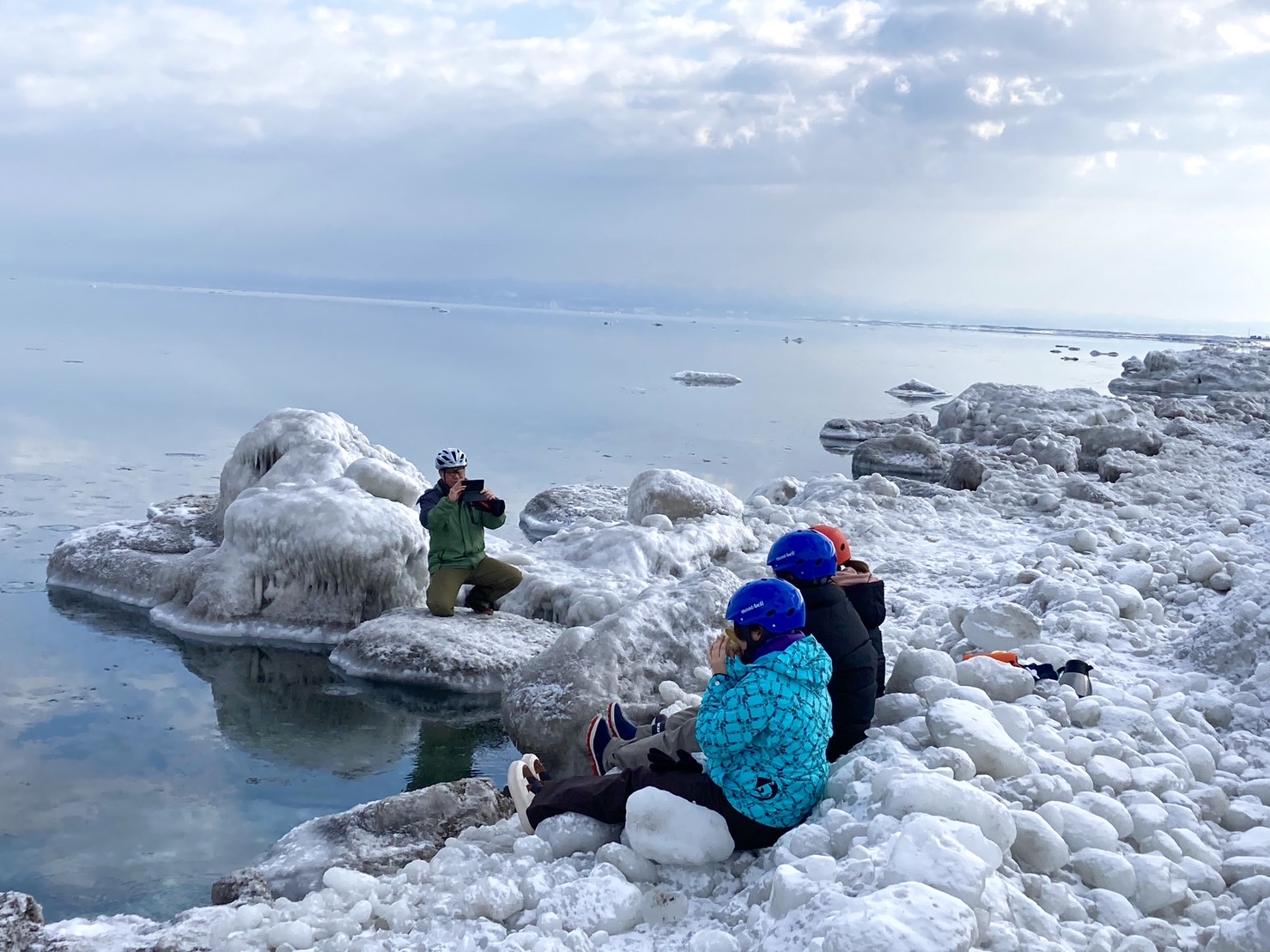 ☆ファットバイク体験後にオホーツク海に接岸した流氷を眺めながらコーヒーブレイクタイムも。